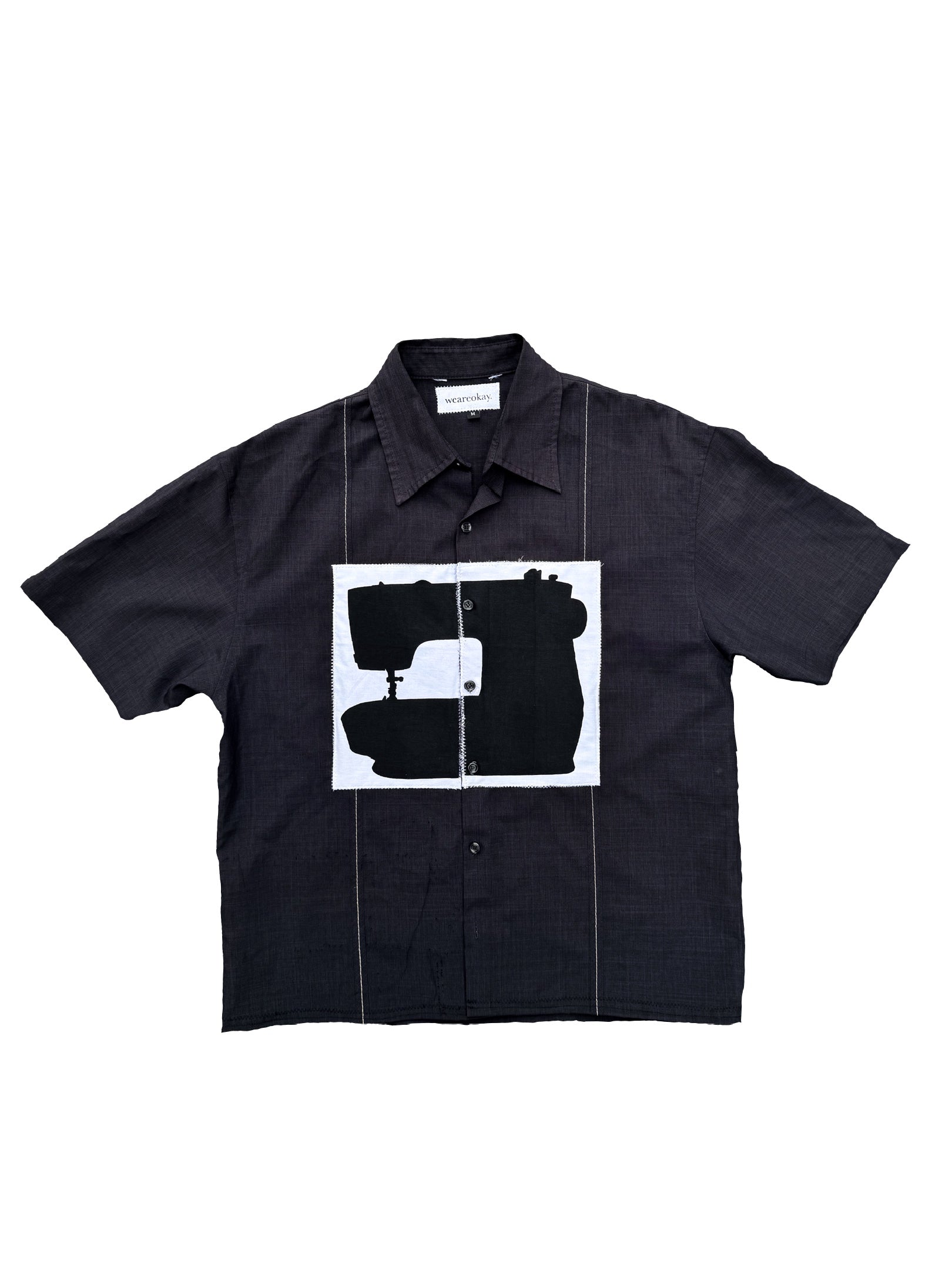 each shirt is sustainably made using second hand shirts and scrap fabrics.